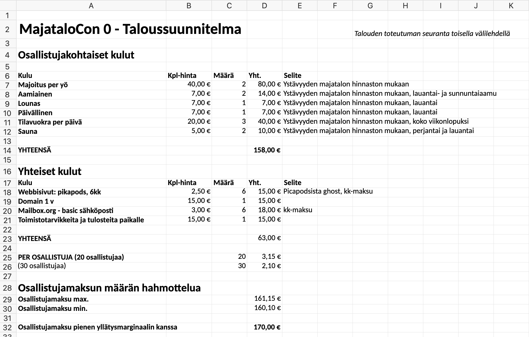 Miltä näyttää MajataloCon 0:n talouden suunnitelma. Ja toteutuma tähän mennessä. Ne avaamme tässä kirjoituksessa.