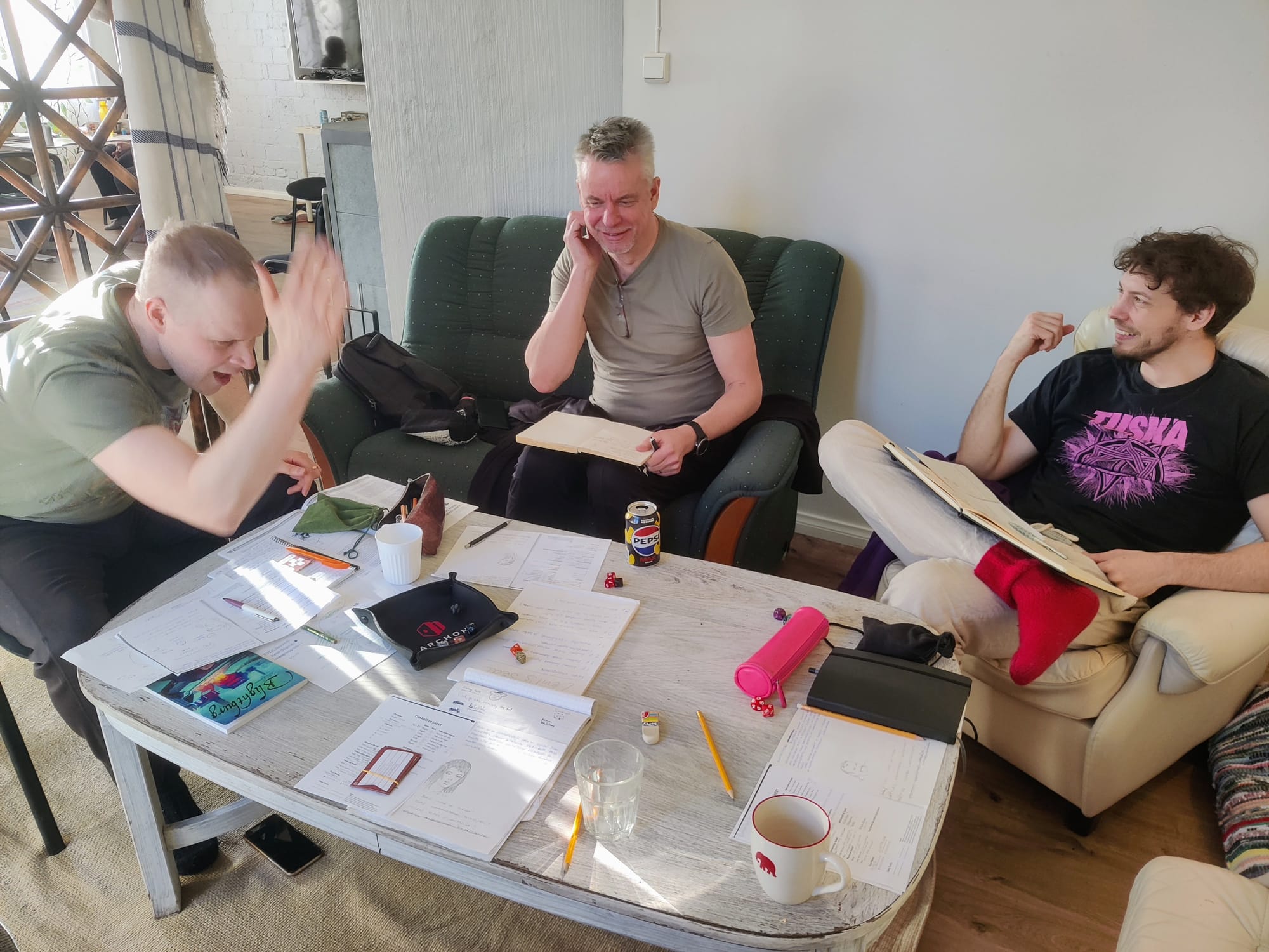 Itse opin myös tapahtuman järjestämisestä muutaman asian. Ensinnäkin, en tule enää jatkossa tuijottamaan osallistujamäärää niin paljoa onnistumisen mittarina. 13 osallistujan coni oli monella tapaa ideaalitapahtuma. Kaikki tutustuivat toisiinsa conin aikana ja useimmat pääsivät myös samaan pelipöytään viikonlopun aikana. Ja noin pieni tapahtuma oli suhteellisen vaivatonta järjestää yksinkin.